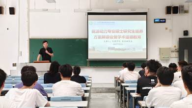 副院长张刚详细介绍了学院发展历程、研究生课程体系、专业实践训练环节、学位授予标准等内容。学术道德教育环节则以“弘扬科学精神,创建诚信校园,营造良好学术生态”为主题,通过剖析数据造假、论文抄袭等典型案例,警示新生恪守学术规范。